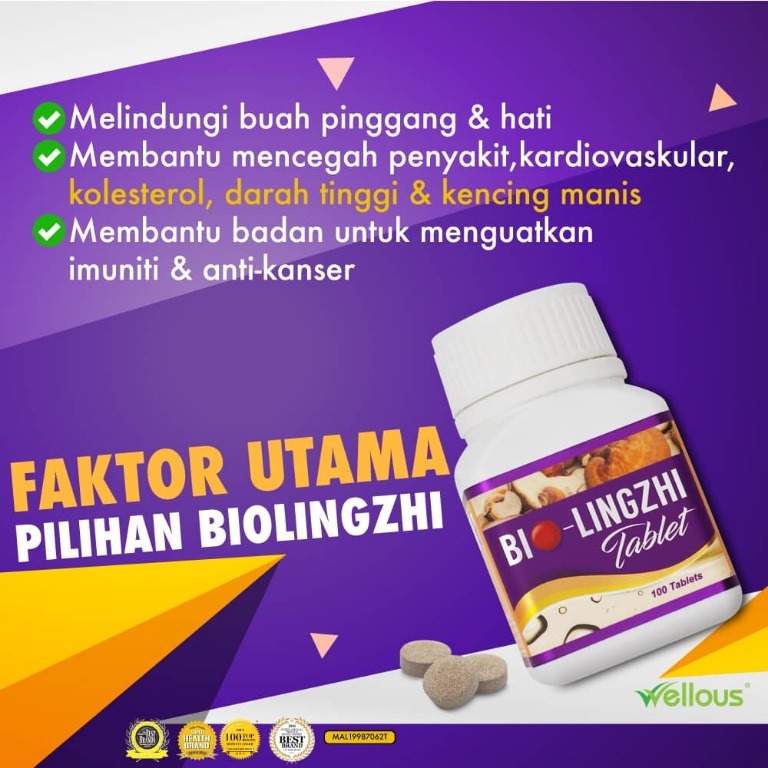 Artikel ini di sunting dari AKHBAR BERITA HARIAN Selasa 30 APRIL 2002 ms 31. BIO LING ZHI Isi 60 tablet Cara Pemakaian Dikonsumsi 31 sehari setelah makan. Wellous Bio-Lingzhi Tablet Kebaikan - Formula peningkatan imun untuk memperbaiki keadaan kesihatan anda secara keseluruhan LIGNZHI boleh digunakan untuk mencegah tumor.
