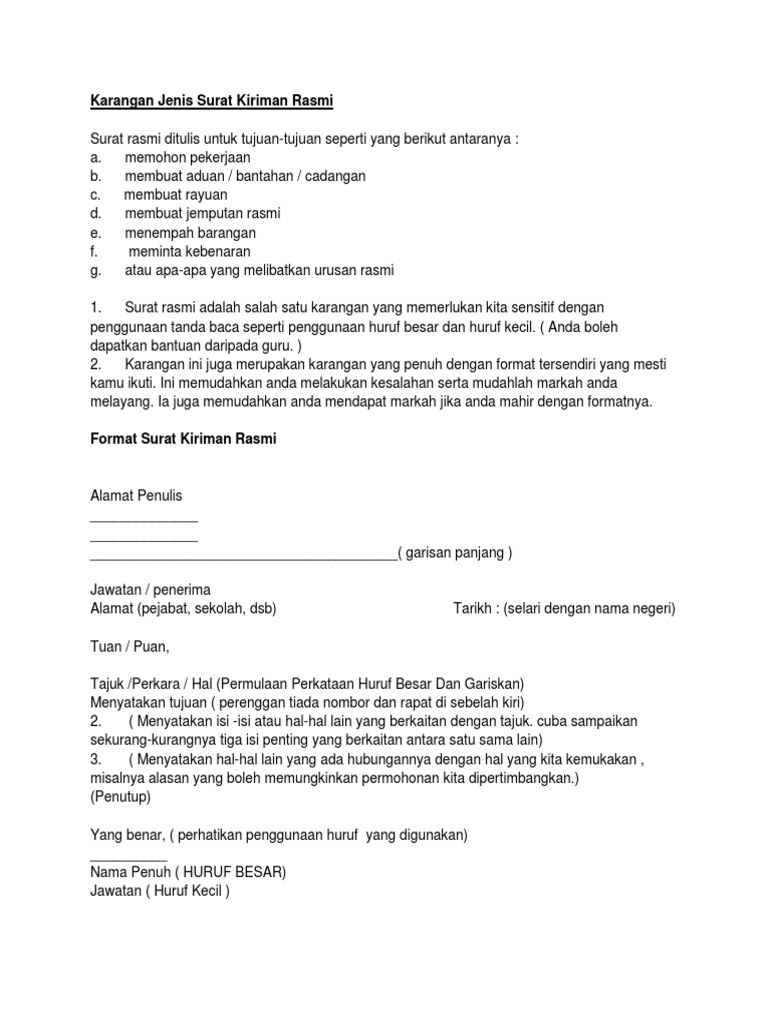 Contoh Karangan Surat Kiriman Rasmi Pdf